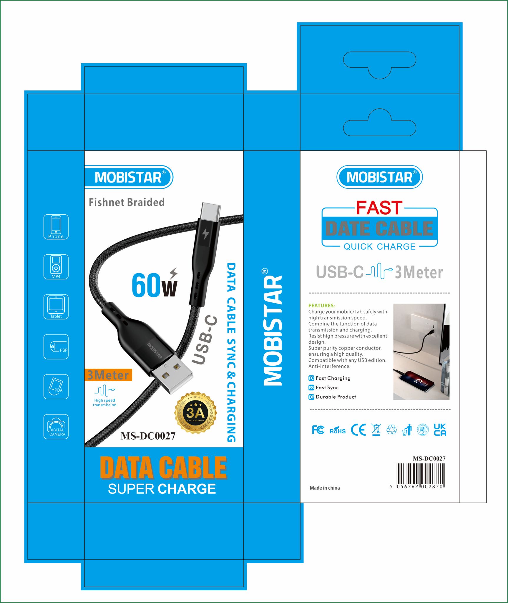 - Durable Fishnet Design – Reinforced cable resists bending, pulling, and daily wear.